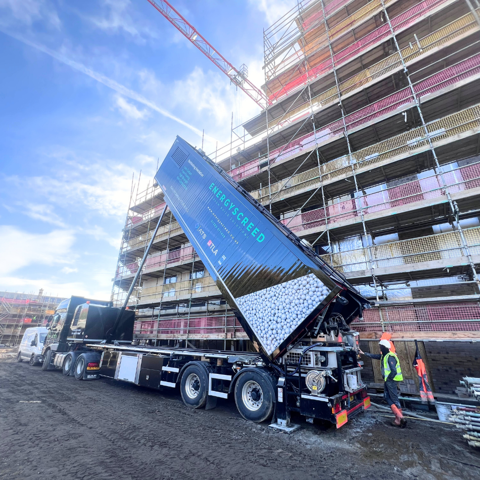 This innovative method allows us to deliver and pump Energystore TLA® insulation directly onto the roof, removing the need for cranes, pallets, or excessive site storage.